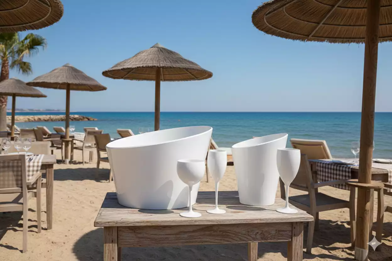 Tous les verres (vin, flûte, bière), ainsi que des sceaux et vasques pour tout événement.